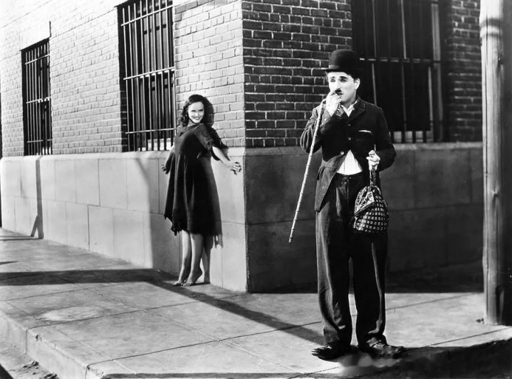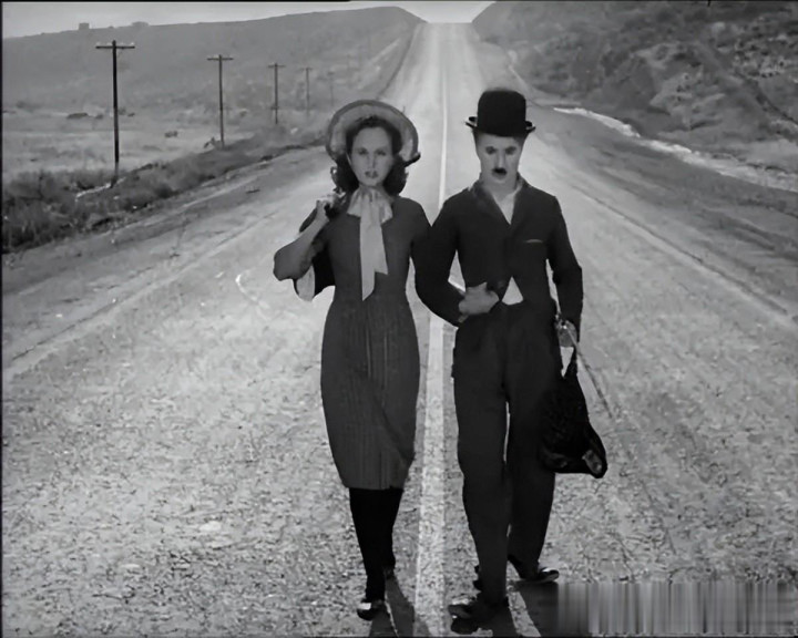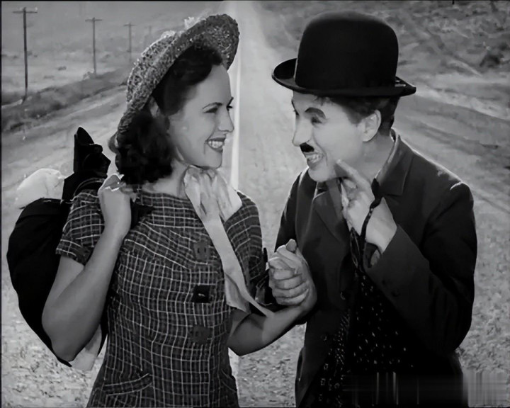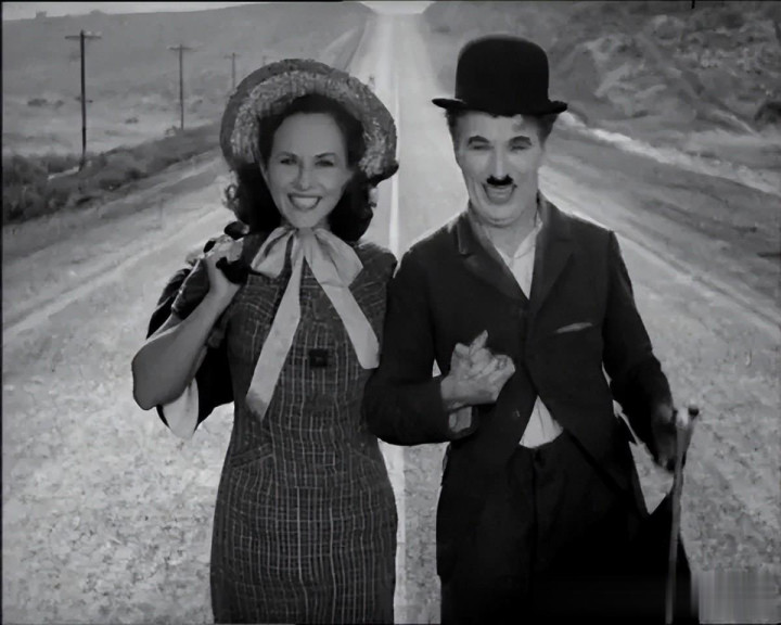 这是给了一个开放式的比较光明的结尾,黎明时分,两人牵手走向远方。47岁卓别林流浪汉的形象最后一次在荧幕出现。