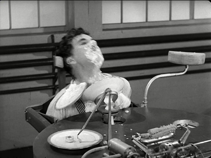 ——前边的拧螺丝和机器喂饭,以卓别林式幽默,展现工人在机器洪流中的荒诞困境,讽刺社会异化,温情与抗争交织,充满对人性尊严的深切关怀!